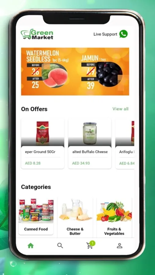 Now you can order online from Green Market. We are offering Instant Home Delivery Service. Weekly Special Offers will be available for App Users.