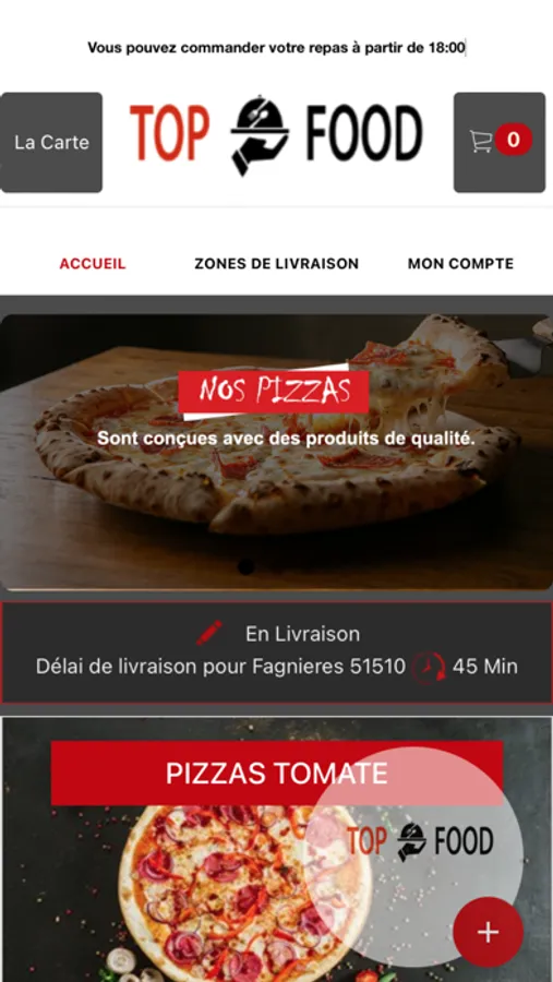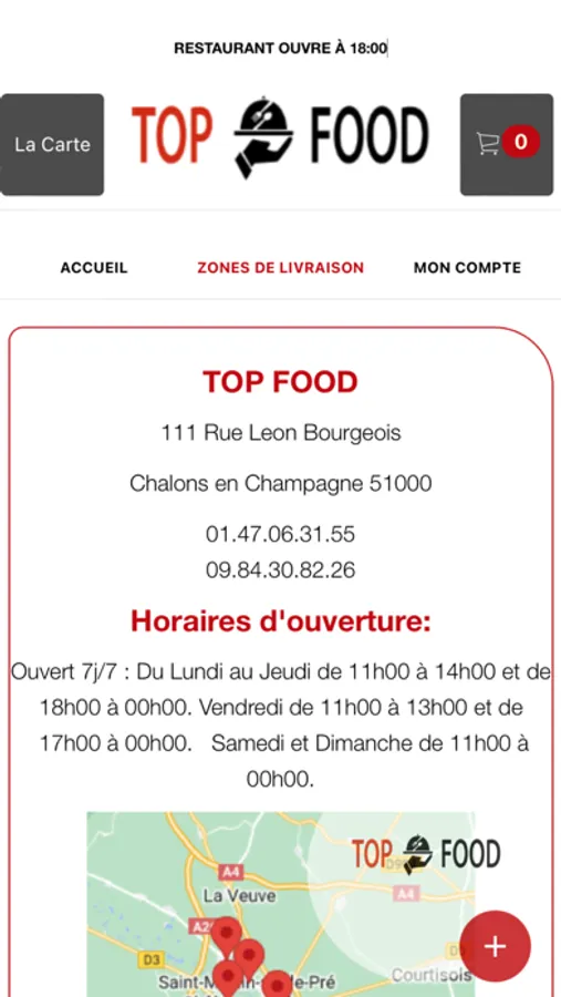 L'application TOP FOOD vous permet de commander en ligne ou par téléphone via votre application. Vous pouvez consulter notre carte et choisir vos produits.