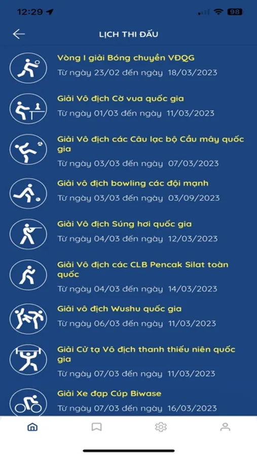 - Lịch thi đấu: Cập nhật, theo dõi các lịch thi đấu nhanh chóng, dễ dàng