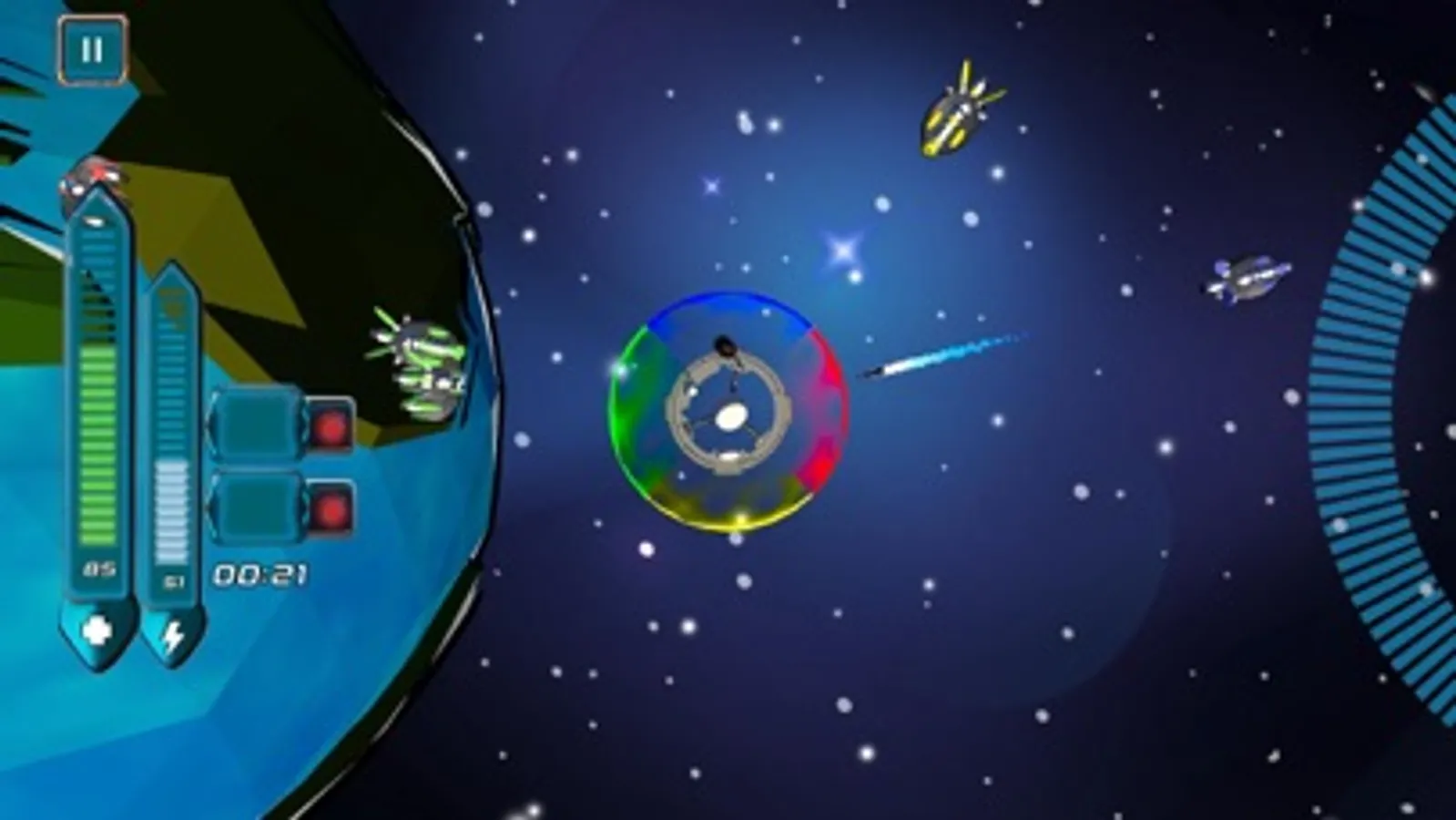 Chroma Defense is an addictive and action-packed game that will put your skills to the test! Your mission is to protect your station from an onslaught of UFOs that are launching rockets, lasers, and ion shots at your defenses.