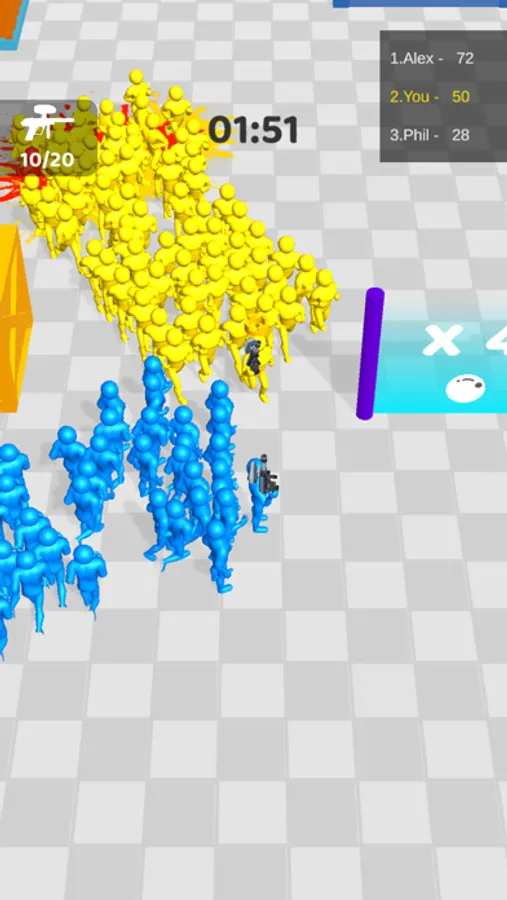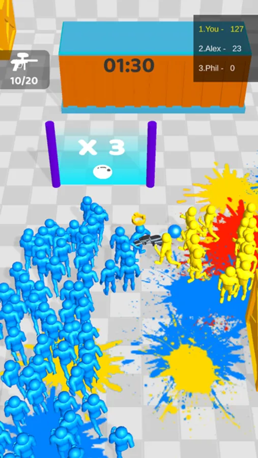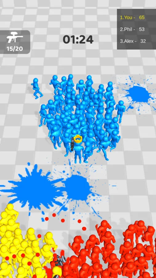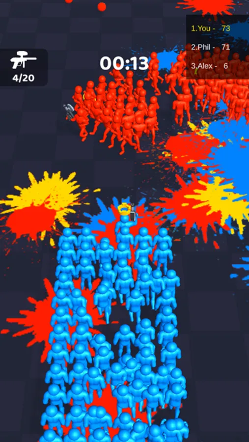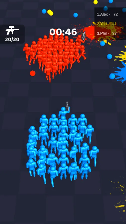 A colorful paintball shooter game where you shoot your enemy of opposite colors and turn them to your colors. Collect their team members and dodge from getting hit by them.