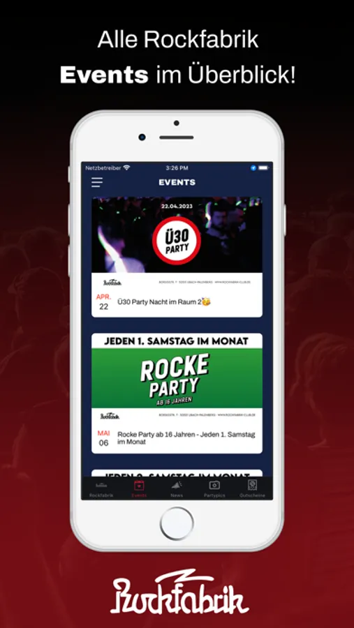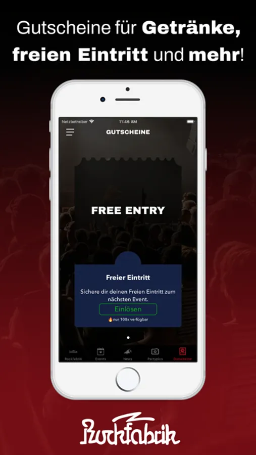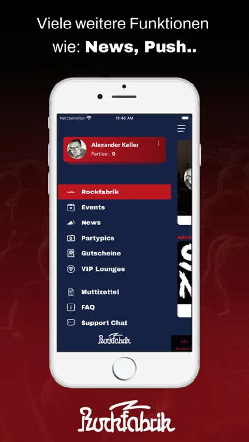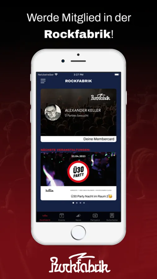 Lade dir unsere Rockfabrik App und werde Mitglied in der Rockfabrik.