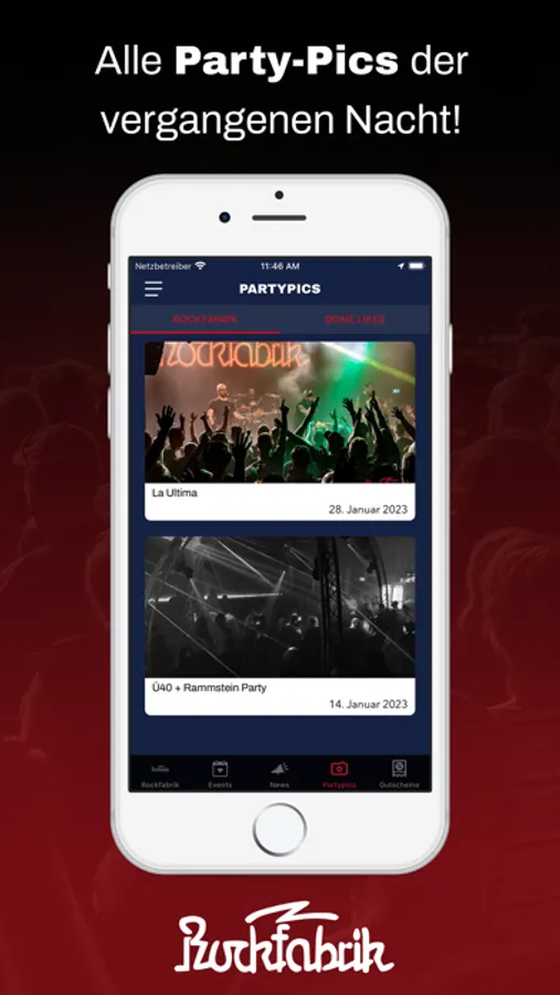Du erfährst als erster, wann die nächste Party steigt und profitierst dabei noch von fetten Aktionen. Zum Event sparst du mit unseren Gutscheinen bares Geld. Damit du dich am Tag danach auch an den geilen Abend erinnern kannst, stellen wir alle Party-Pics in der App bereit.
