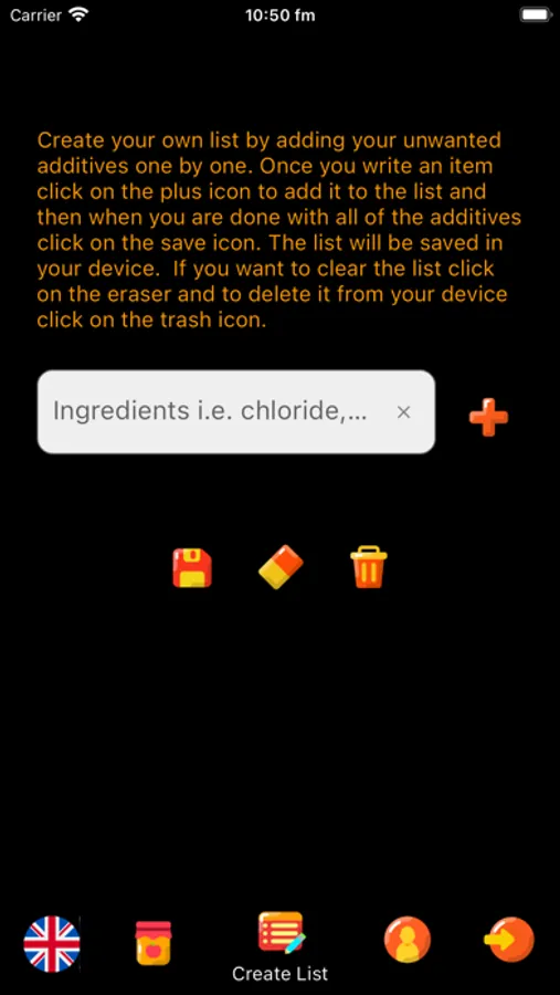 A simple app to check text ingredients in food products and see if it contains any harmful or dangerous additives into it. There is a ready list of substances in the app which is used in the main function. You can create your own list of unwanted additives and use that one instead when you check the food ingredients on products.