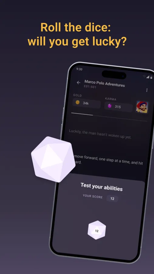 • Roll the dice! Sometimes it's not enough to just make a decision: you have to rely on fate to decide your fate! Whether it's a fight, a dangerous jump, or a chance dictated by chance, you'll have the chance to roll the dice. With the combination of scores, accumulated items, and a bit of luck, your move will influence the choices of fate!