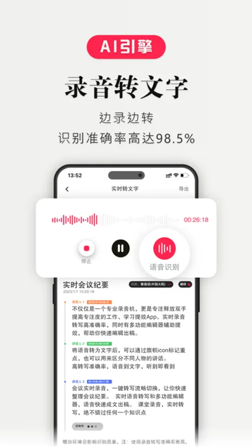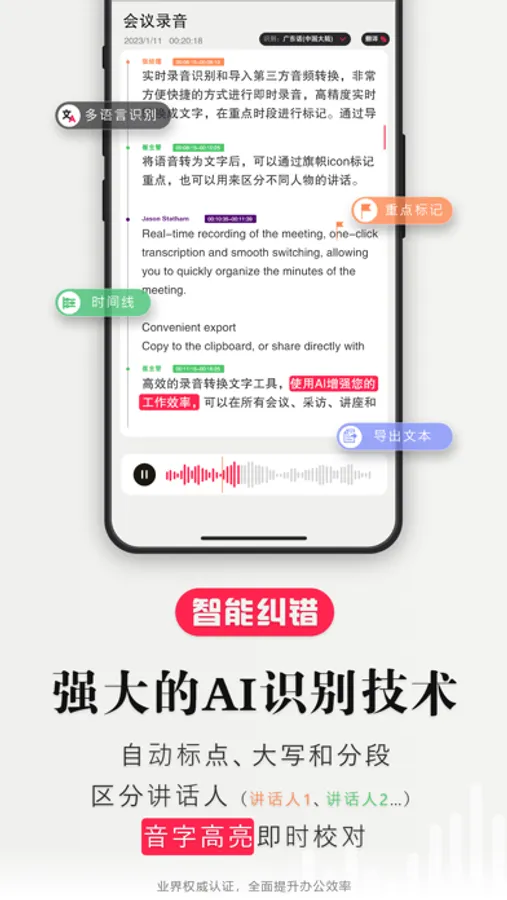 一款专业的录音转文字软件,支持几十种录音快速转换成文字。同声传译、视频转文字、录音裁剪编辑、文字转语音(配音)等更多AI功能等你来体验。