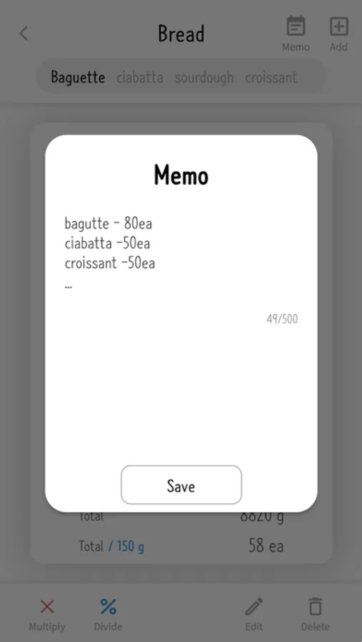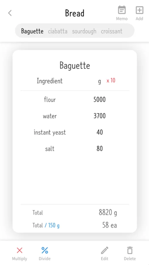 2. Recipe multiply Calculation
