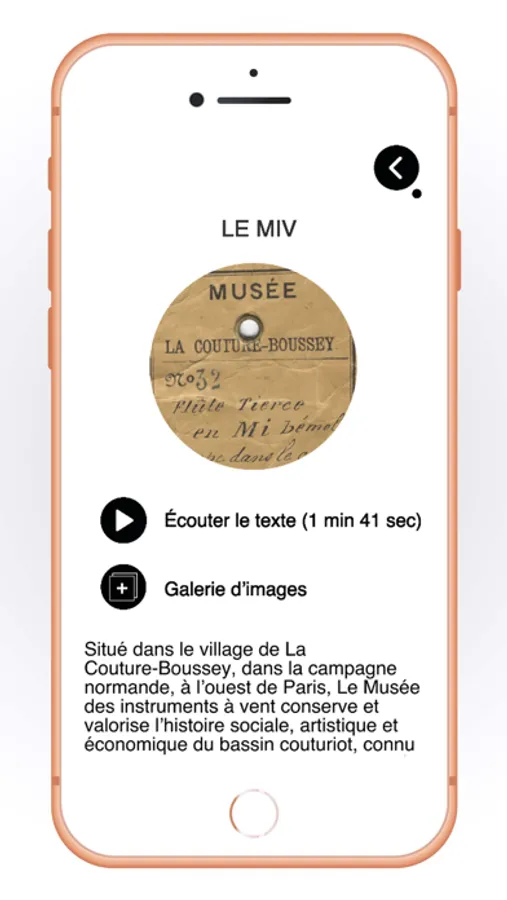MIV est une application gratuite en français et en anglais, dédiée à la visite du Musée des instruments à vent de La Couture-Boussey.