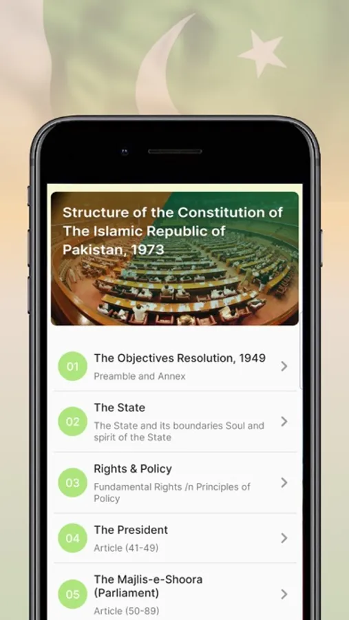 This app has been designed with the primary objective of promoting awareness among citizens of Pakistan about their constitutional rights as outlined in the Constitution of Pakistan 1973, as well as the constitutional hierarchy of the country. It aims to provide information on the functioning of key institutions, and the powers and limitations of each government entity.
