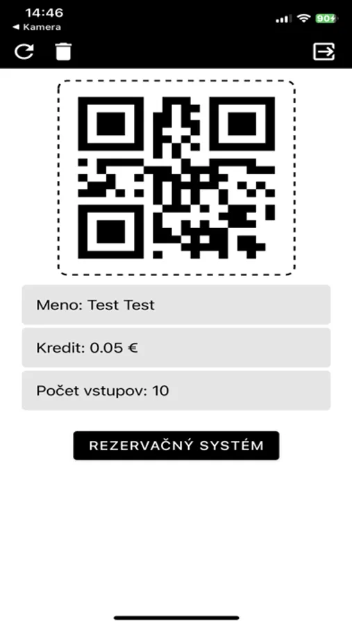 V aplikácii sa zaregistrovanému klientovi po prihlásení zobrazí jeho aktuálny stav kreditu, permanentky a jeho identifikačný QR kód.