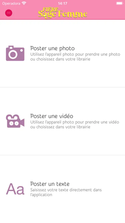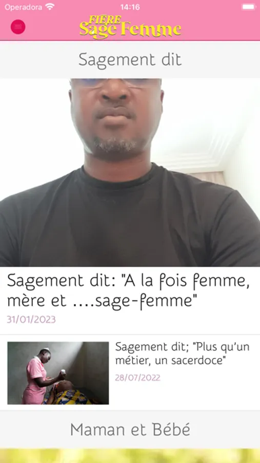 "Fière Sage-femme" est une application au service de la corporation des sage-femmes de tous les horizons. Elle prétend donner toutes les informations nécessaires à l'épanouissement professionnelle et socio-économique de la sage-femme. Elle est aussi un véritable compagnon pour la jeune fille ainsi que la mère afin de veiller sur le developpement harmonieux de bébé. Le volet social et économique y est également présent afin de faire de la sage-femme un véritable acteur du developpement de son pays...