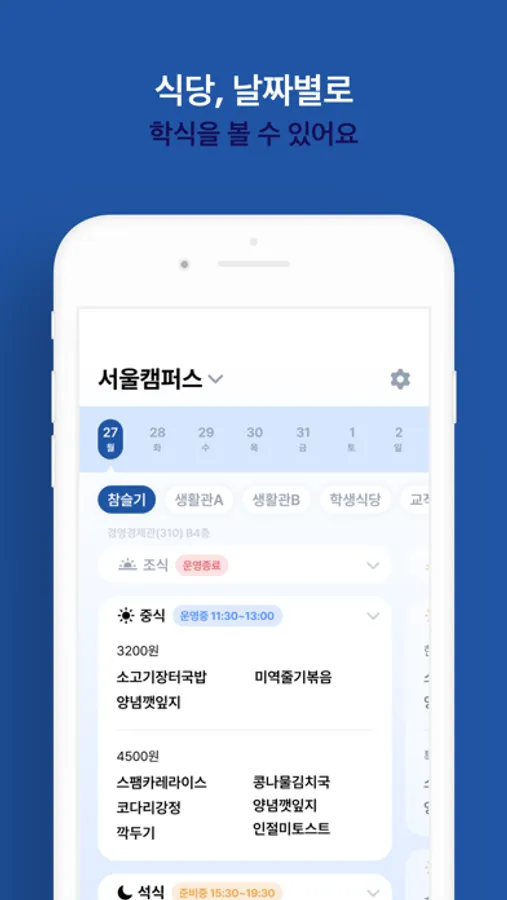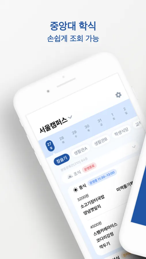 가입없이 중앙대학교 서울, 안성캠퍼스의 모든 식당 메뉴를 조회할 수 있어요