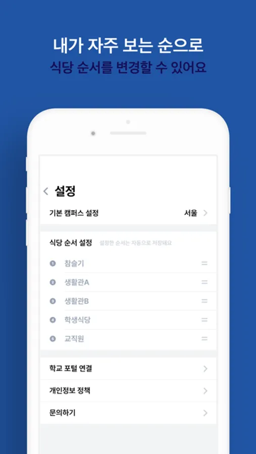 사용자 별로 즐겨찾는 식당순으로 설정 가능해요