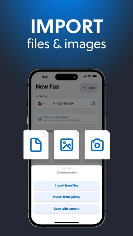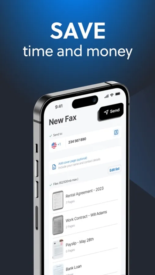Send documents and files on the go to any one of your smartphone contacts, or by manually adding a recipient. Save time by avoiding fax offices and old fax machines.