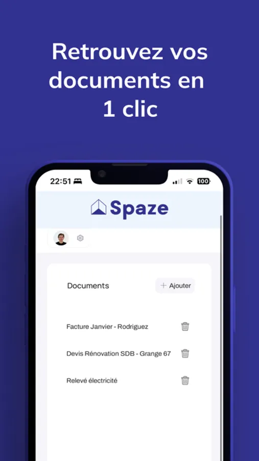 Ne perdez plus de temps à chercher vos documents. Spaze centralise tous les documents liés à votre projet, tels que les plans, les devis, les factures et les contrats. Accédez-y en quelques clics et partagez-les facilement avec les parties prenantes.