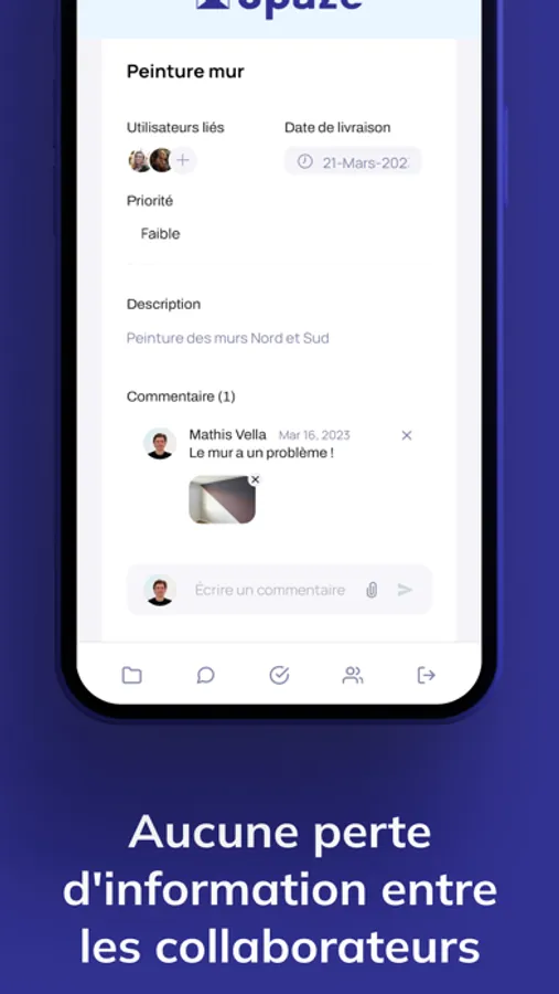 Finis les malentendus et les retards ! Spaze facilite la discussion entre les clients et les membres de l'entreprise grâce à son interface conviviale. Échangez des messages, des photos et des documents en toute simplicité pour une communication transparente.