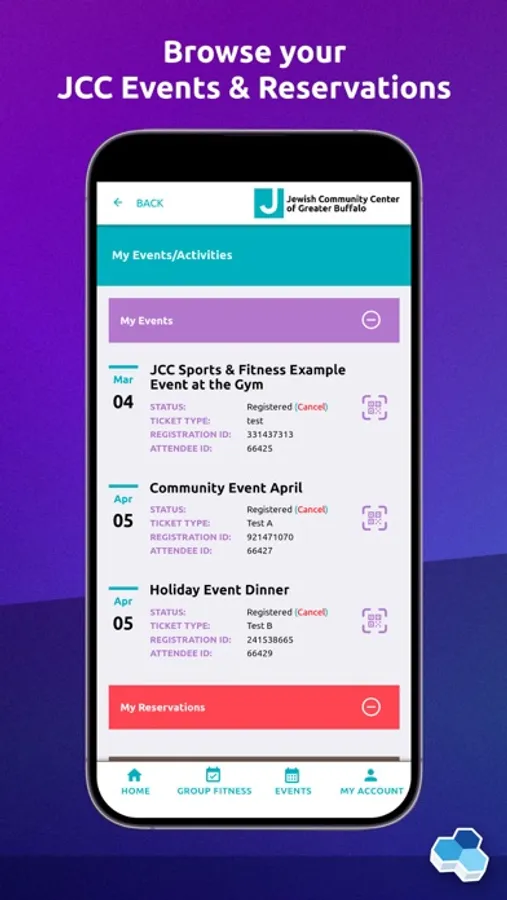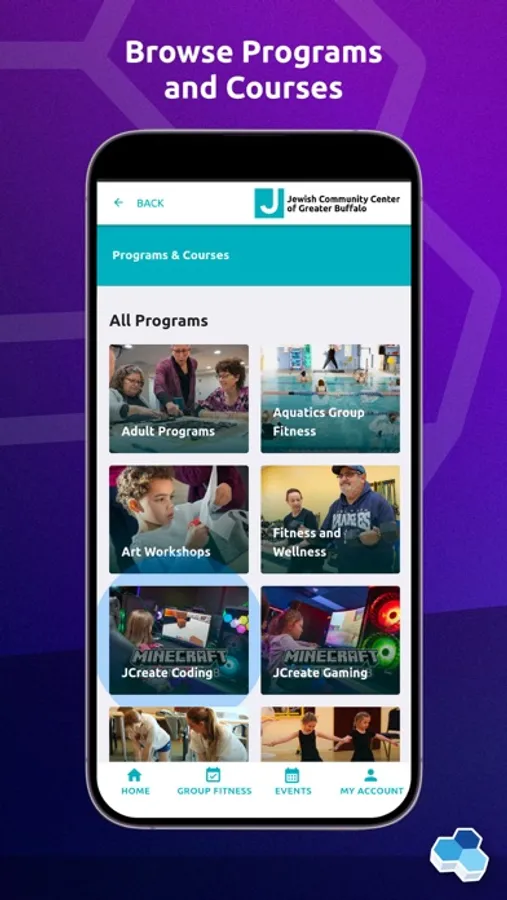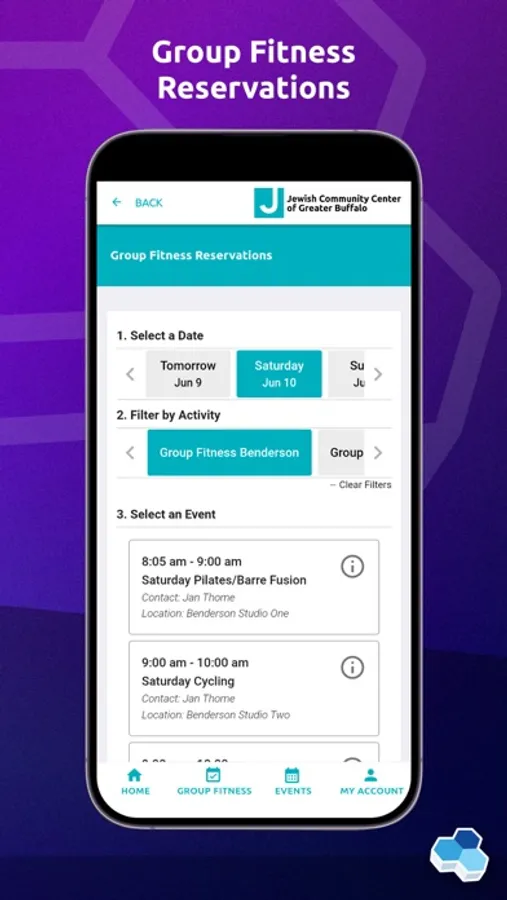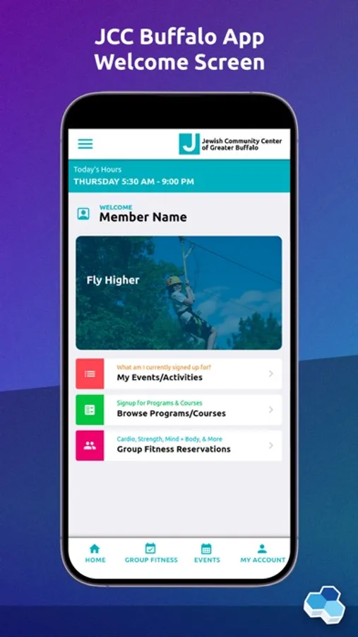 Use the JCC Buffalo app to make group fitness reservations, register for programs and events, and access account information.
