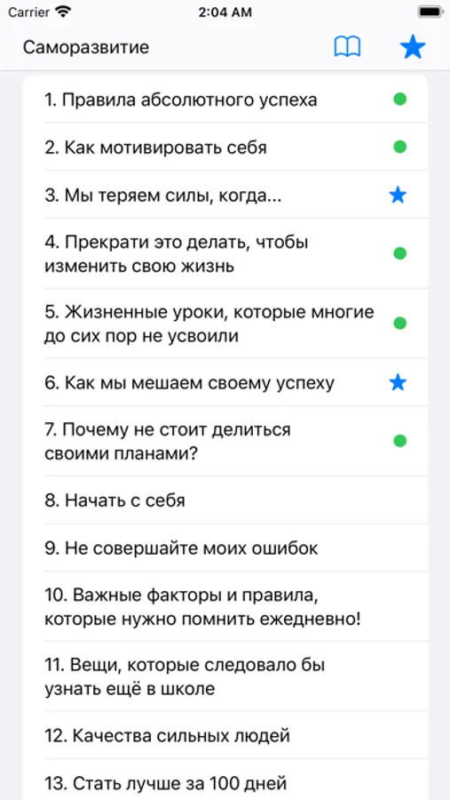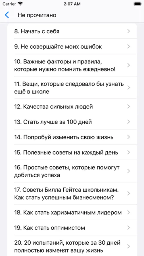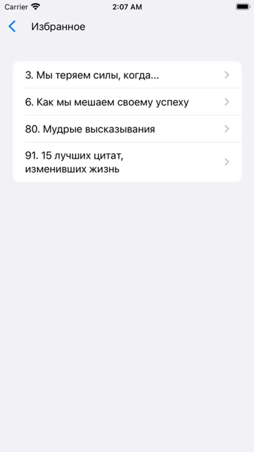 В приложении Саморазвитие. Мотивации. Успех собрано более 200 полезных статей для личностного роста: правила жизни; секреты успешных людей; мудрые слова; уверенность; мотивация.