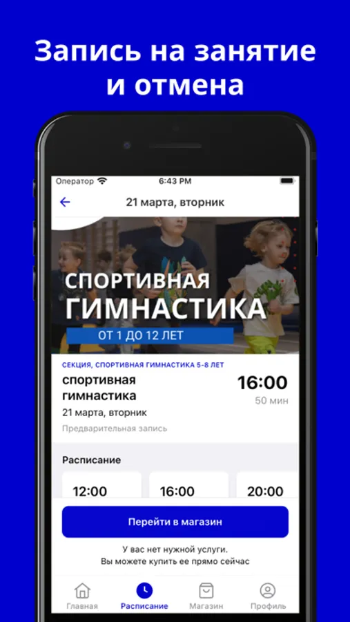 Мобильное приложение для онлайн записи на тренировки и аренды помещения.