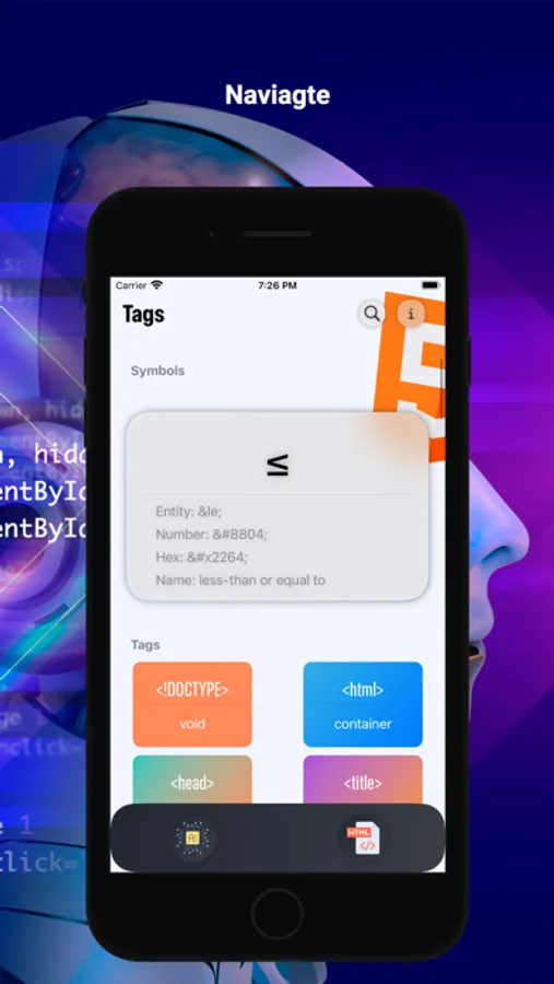 HTML AI is a simple app designed to make your coding life easier with its powerful AI capabilities and its element tags & symbols book.