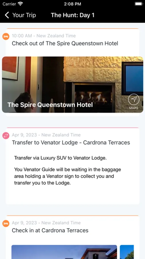 View your detailed travel itinerary associated with your Venator Hunt on your device.
