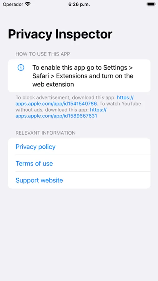 How to use this app: Go to Settings > Safari > Extensions and enable the Safari web extension