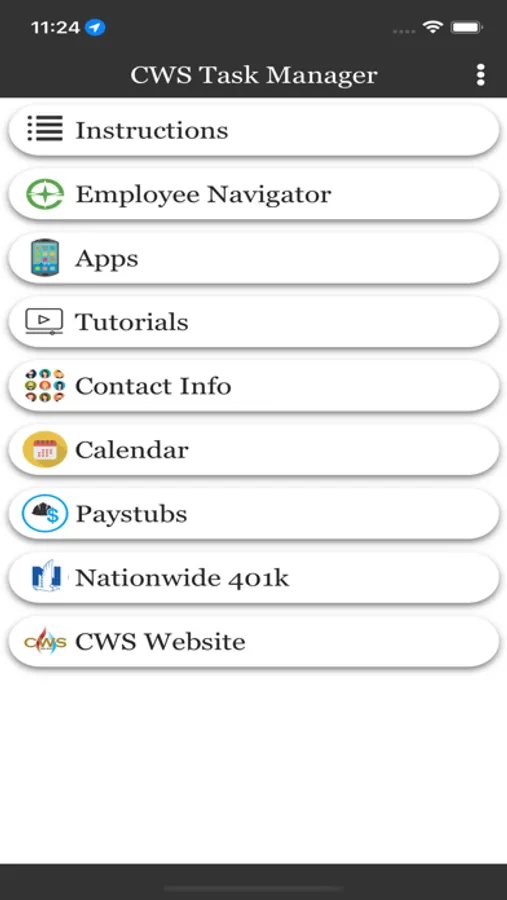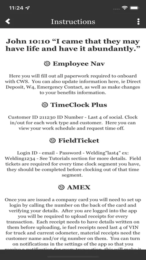 CWS Employee application, helps our employees navigate through the daily tasks that they are assigned. Contains information to onboard new employees, apps to download, and contact info for our company admins.