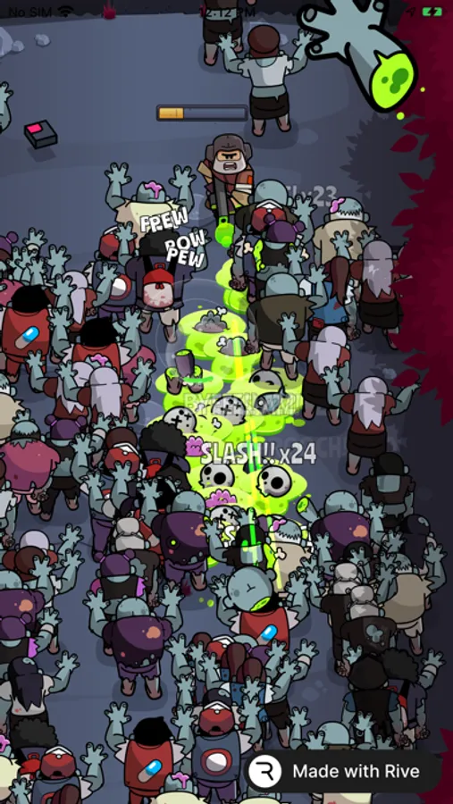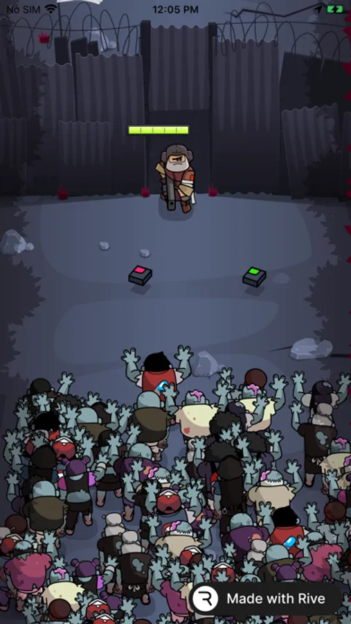 Battle hundreds of zombies in this technical preview of Rive’s new vector rendering technology. The Rive Renderer draws an unprecedented amount of vectors on screen. Everything animates and deforms without losing quality. Graphics remain crisp and clear regardless of scale, resolution, or device.