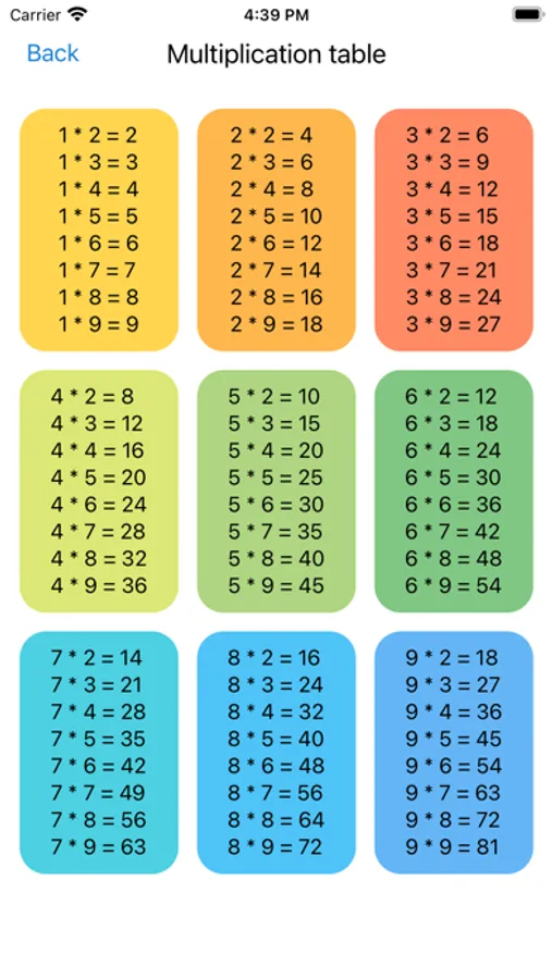 Multiplication Table is an educational app for kids that helps them learn the basics of math literacy in an easy and fun way. With this application, children will be able to better understand and memorize the multiplication and division table in a playful way.