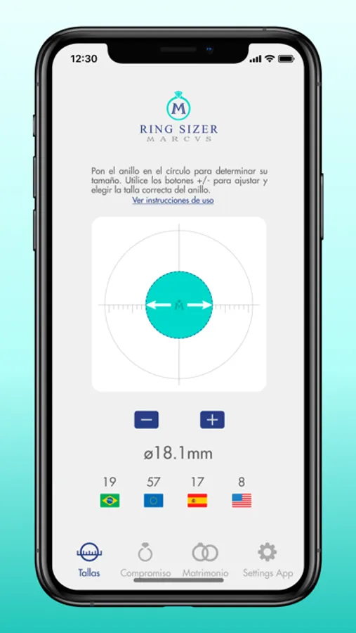 Herramienta simple y fácil de usar, pero poderosa y precisa para encontrar rápidamente el tamaño de su anillo de joyería. Detalles importantes de la aplicación: