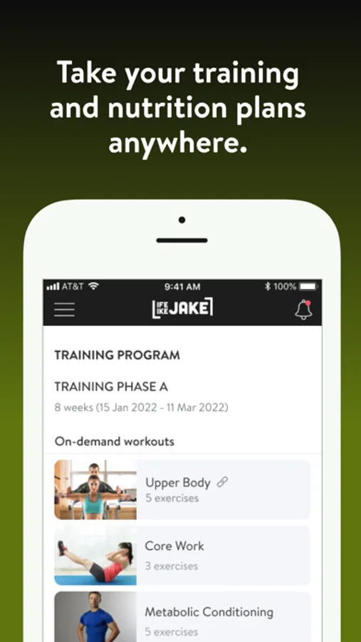 With the LIFE LIKE JAKE App, you will have access to workout programs designed specifically to help you reach your health and fitness goals! You can follow & track your workouts, your nutrition, your lifestyle habits, measurements and results–all with direct support from me, Jake Thomas.