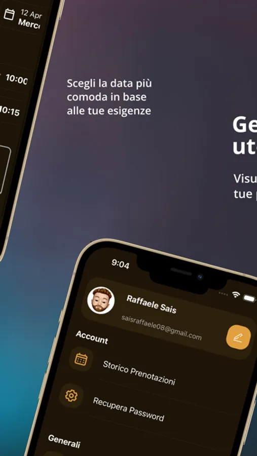 Inoltre, l'applicazione offre anche la possibilità di modificare o annullare gli appuntamenti già prenotati, inviare promemoria e conferme di appuntamento tramite notifiche push e gestire le preferenze del profilo utente.