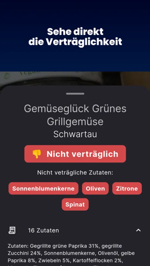 Die App nutzt modernste Technologie, um Produkte auf ihre Inhaltsstoffe zu scannen und dir sofort anzuzeigen, ob sie für dich geeignet sind oder nicht. Du musst nur die Kamera deines Smartphones auf den Barcode des Produkts richten und schon erhältst du alle wichtigen Informationen zu Histamin, Sorbit, Fructose und anderen potenziellen Auslösern von Unverträglichkeiten.