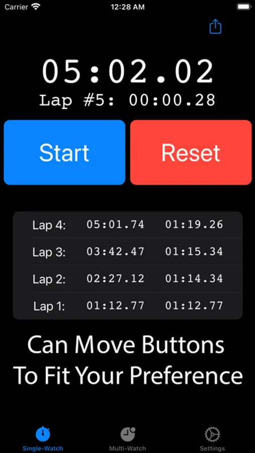 Customizable Interface: The Simple Stop Watch Timer App allows you to customize the button size and location to match your preferences. With a user-friendly interface, you can tailor the app to your unique needs and enjoy a seamless time-tracking experience.