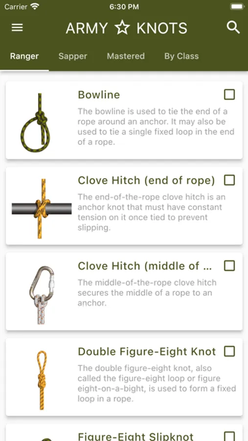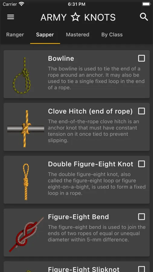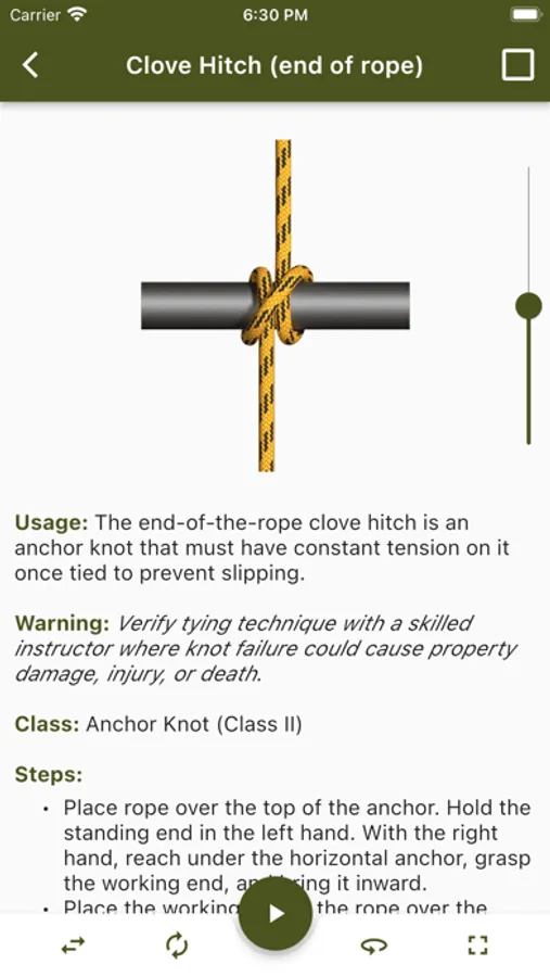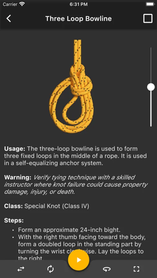 - Step-by-Step Instructions: Follow clear and concise, step-by-step instructions that make learning and mastering these knots a breeze. Checkpoints verify you've tied the knot correctly.