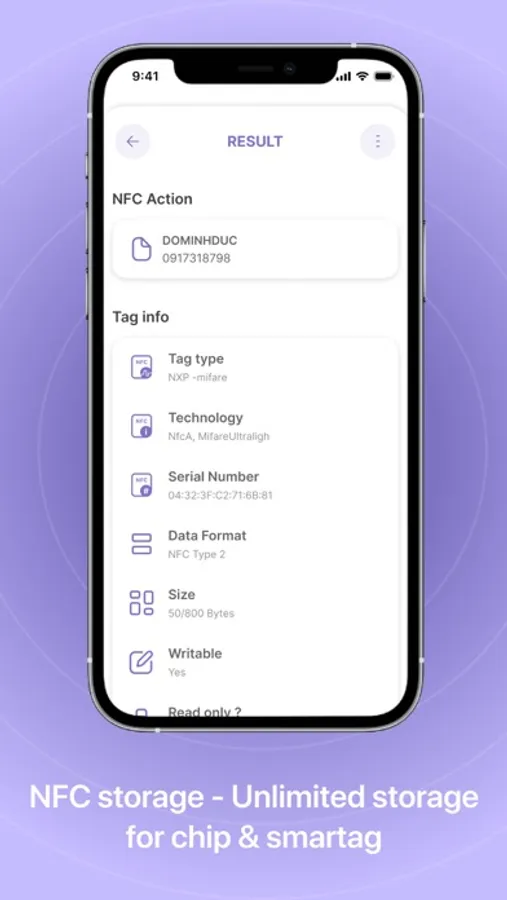 - Unlimited write data info on NFC Tags by NFC writer