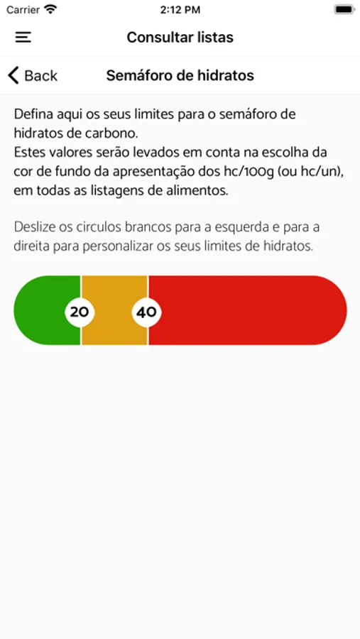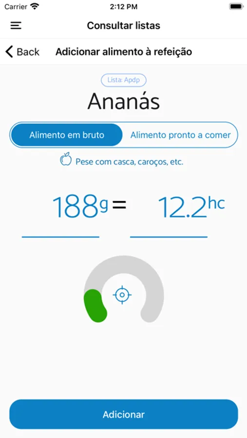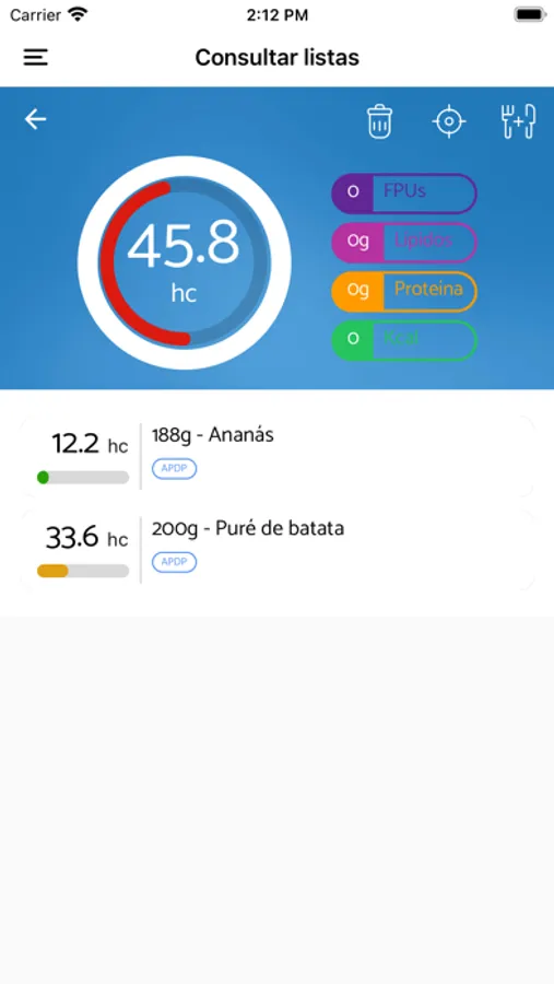 Facilidade na contagem de Hidratos de Carbono, Calorias, Gordura e Proteína incluindo conversão automática para a unidade FPUs (Fat Protein Unit).