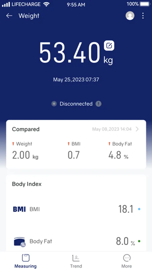 LifeCHARGE is an application for recording family weight data. This application can help you connect a weight scale to measure and record weight, and provide chart display and reports that can be used with family members.