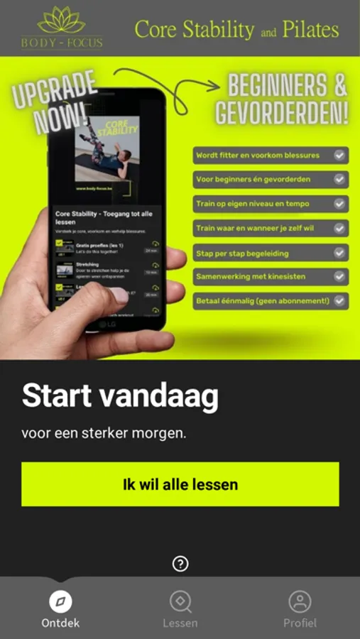 - Ben je helemaal overtuigd en wil je meteen aan de slag met je nieuwe app? De link om toegang te krijgen tot alle video’s vind je onder de gratis proefles.