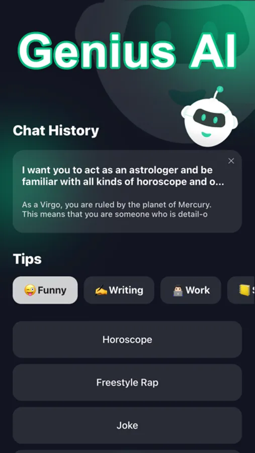 ChatMate - the ultimate AI-powered chatbot app that helps you with all your queries and problems. With its intelligent AI technology, ChatMate can assist you in a multitude of ways, from answering your questions to translating any language text, and even helping you with your writing tasks.