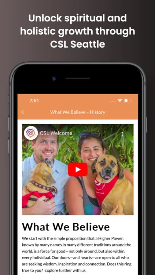 Welcome to the official mobile app for Center for Spiritual Living of Seattle, WA. Use this app to watch our Sunday Talks live, review upcoming classes and events and connect through our Prayer Support. Learn about what CSL Seattle offers and receive guidance for your spiritual journey. Share empowering content with family and friends via Facebook, Twitter, or email.