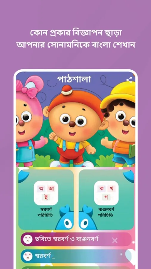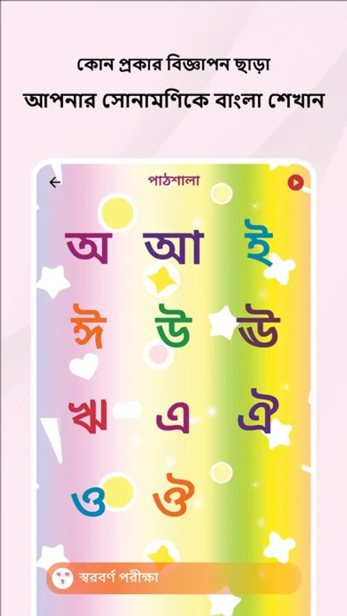 There are vowel and consonant games and tests for familiarization and whether you understand it or not. Watch the test game and understand for yourself