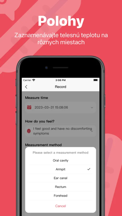 This is an App for quickly measuring and recording body temperatures in just a few seconds. It can rapidly collect temperature data from various body parts, such as oral, axillary, ear canal, forehead, and rectal. Easily view temperature trends and record your body sensations under the current temperature condition. The data center allows you to review all past temperature records and temperature trend graphs.