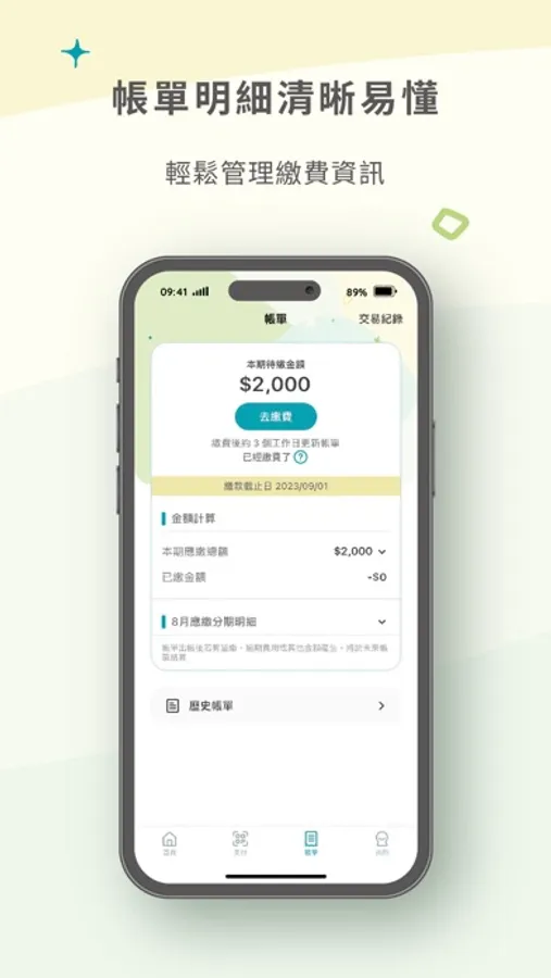 人性化查詢交易紀錄及繳款明細,帳單智慧又清晰!