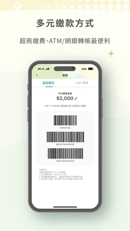 提供超商繳款、ATM/網銀轉帳等多元付款方式,繳款方便又即時!
