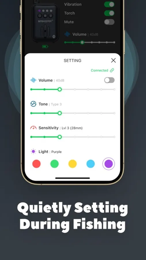 BITEKEEPER is a smart alarm application developed by Rippton Smart Fishing Gear. The app allows you to easily control the functions of Rippton's alarms, such as volume, tone, sensitivity and light color.