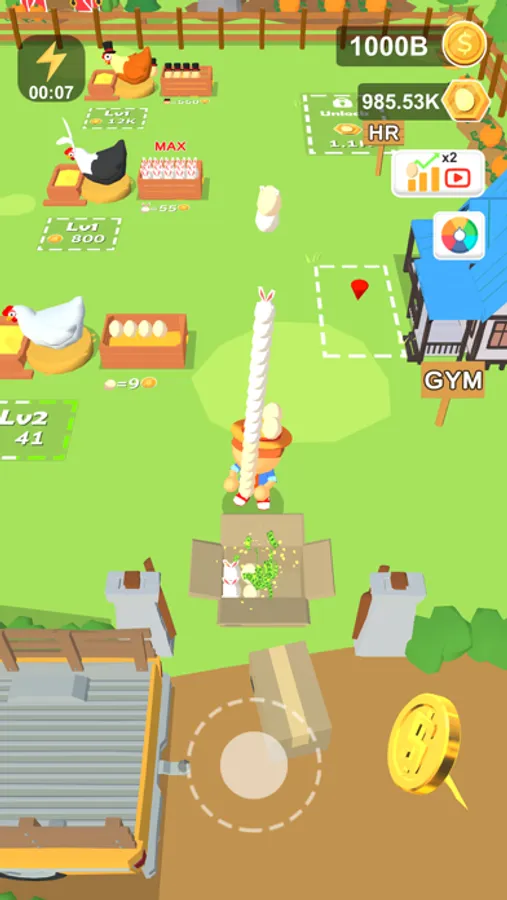You have a small egg farm. You need to buy chickens, let them go down, then carry out the egg to the truck, sell them to get income. You can continue to upgrade the quality of the chicken and make the eggs they produce more valuable. When you have accumulated enough money, you can buy new chickens to produce non-necessarily eggs. You can also hire workers to help you handle these things.