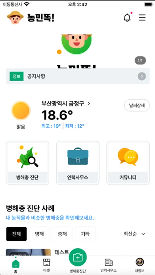 키우는 작물이 병에 걸렸을 때 이 어플에 등록해 전문가에게 진단을 받을 수 있습니다.