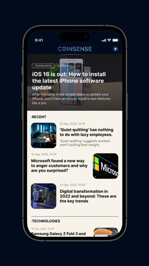 CoinSense is a cryptocurrency news application that provides users with up-to-date information on the latest developments and trends in the digital currency world. Designed with simplicity and user experience in mind, CoinSense delivers the most important news stories, analysis, and insights from the most trusted sources.