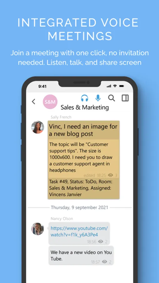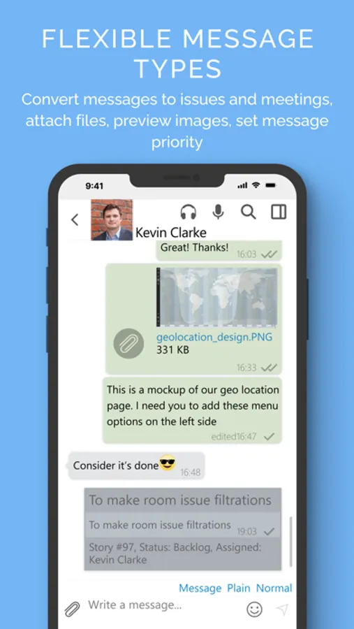 Usual corporate messenger features: